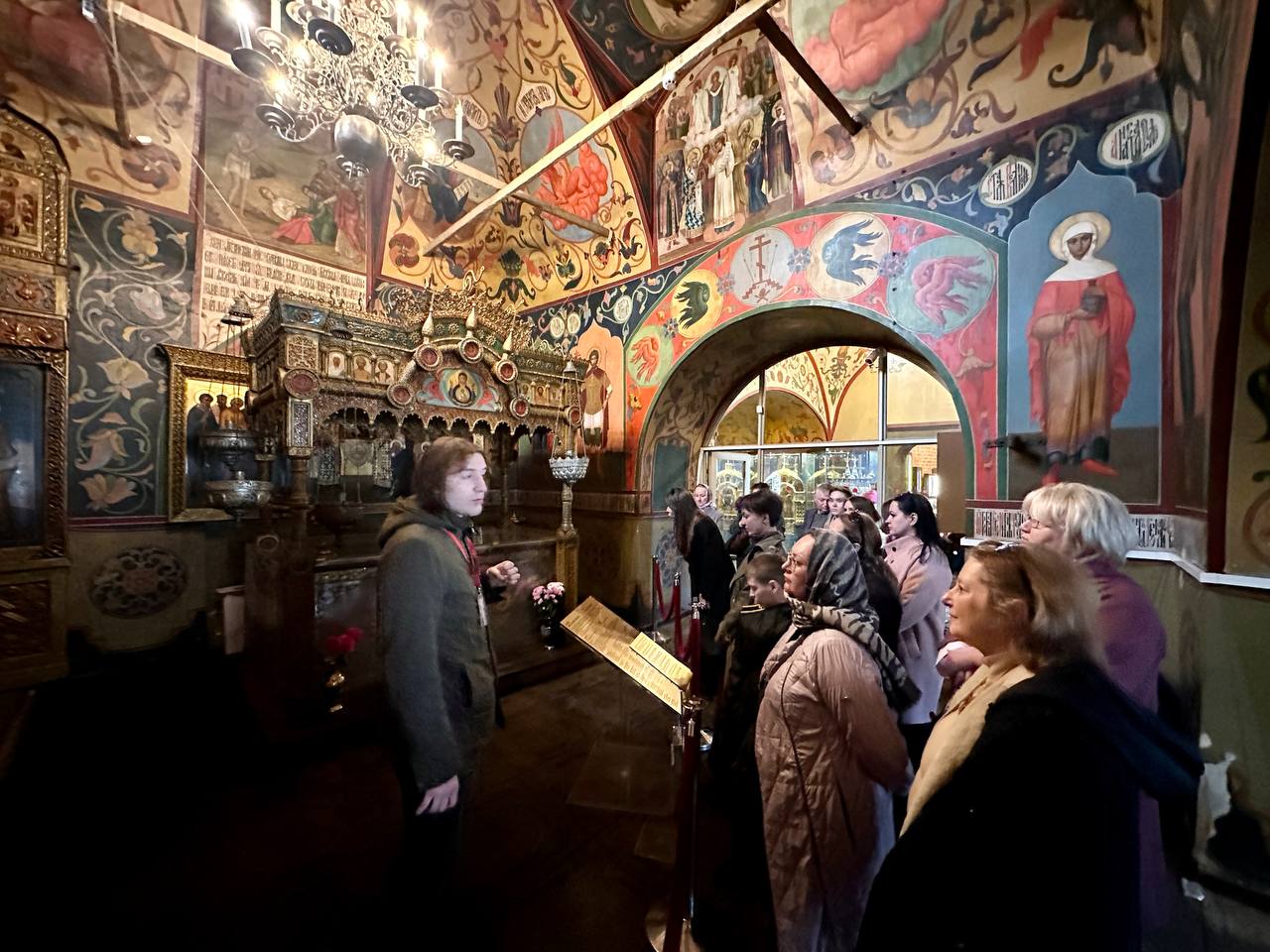 Дошли до Ильинки, где нас ждал радушный прием в одном из старейших Московских храмов Пророка Божия Илии. В храме нас угостили вкусной выпечкой и дали передохнуть. Но главное, показали то, что пока недоступно москвичам и гостям столицы. Мы увидели уникальные росписи древнего храма, снятые со стен и смонтированные на новые основания. А ещё спустились ниже уровня нынешней Ильинки и оказались в храме 16 века, где некогда молился Иван Грозный.