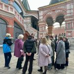Отдохнувшие и накормленные мы вышли на Красную площадь. И вот перед нами всем известный, узнаваемый, но полный загадок Покровский собор, именуемый в народе Храмом Василия Блаженного. Почему и когда возникло это название и еще многие тайны этого совершенно удивительного собора мы узнали в ходе экскурсии.